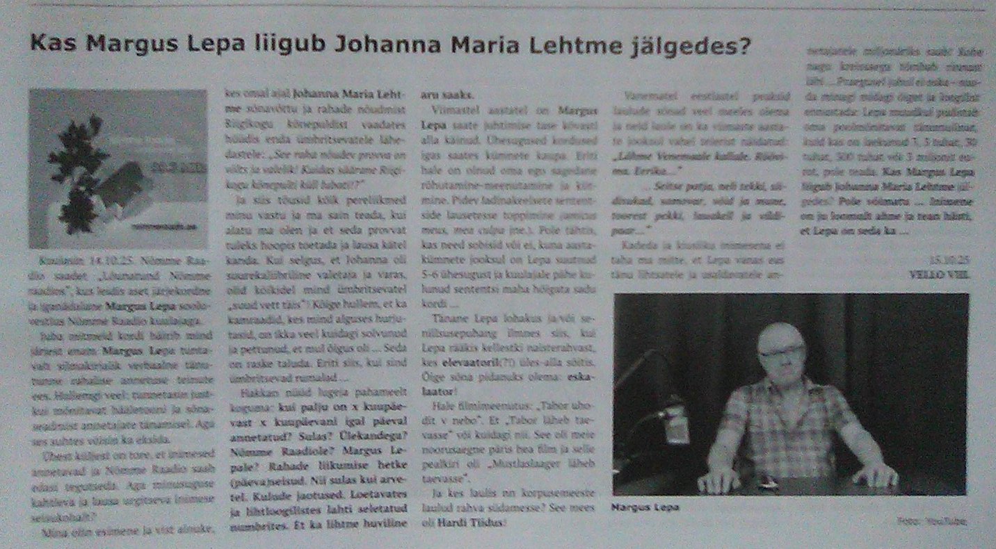 Esmaavaldatud internetiväljaandes „Uudistekeskus” 31. oktoobril 2025.